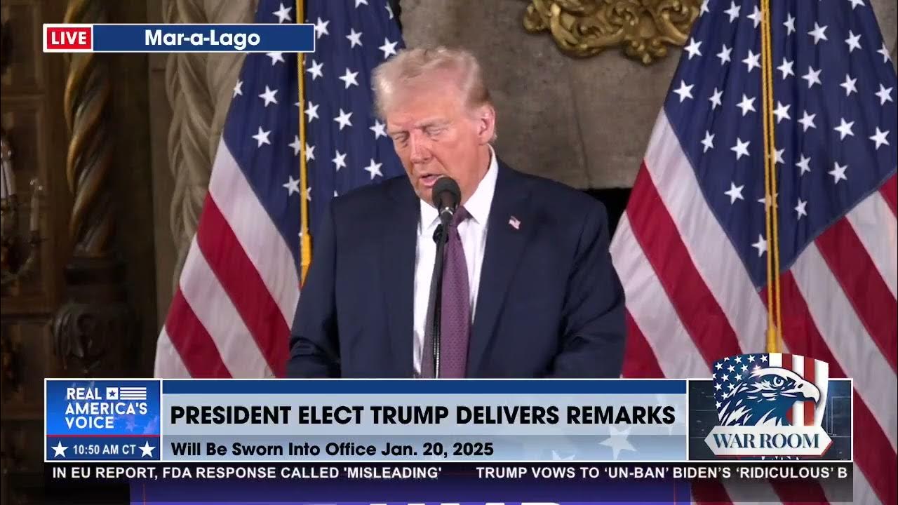 Trump comenzó su discurso hablando sobre la situación actual entre Estados Unidos y México, mencionando que "tenemos un déficit masivo con México" y que "ayudamos mucho a México". Según él, el país vecino está "esencialmente controlado por los carteles", lo que representa un grave problema. Además, describió a México como "un lugar muy peligroso" que enfrenta "muchos problemas".
